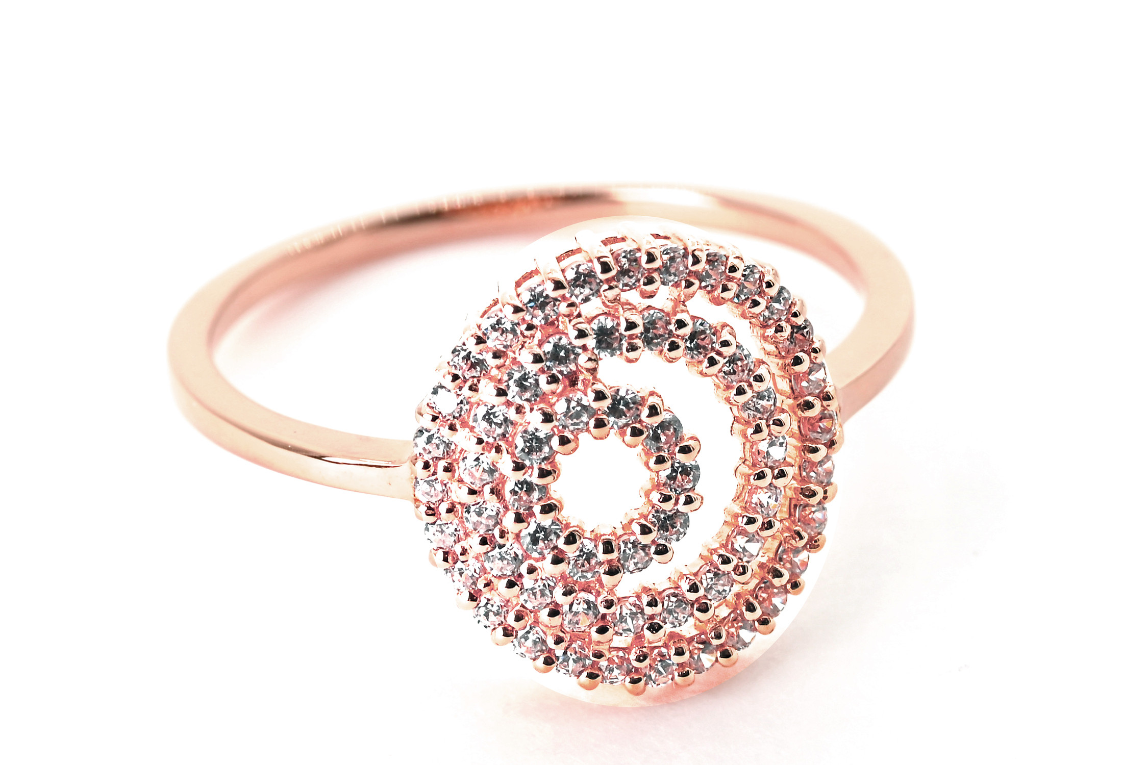 ダイヤモンドが3重に取り巻いた少し個性的なデザインではありますが、