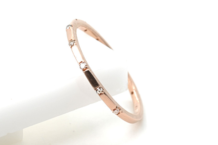 幅約1.3mmの細身のリングに11石のダイヤモンドを指輪に埋め込んで見えるように留めました。