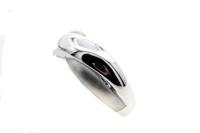 太い縄のようなデザインで片側がサティーナのつや消し加工になっていますので、プラチナの鏡面仕上げとサティーな仕上げの両方の輝きを楽しんでいただける指輪になっています。