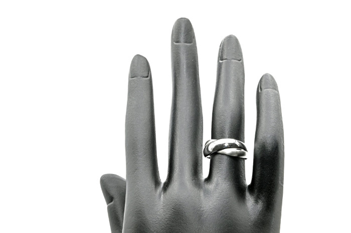 石の付いていない地金のみのデザインですので日常提起お使いいただけると思います。最大幅約7mmのボリューム感のあるデザインは毎日の生活を幸せ手にしてくれると思います。
