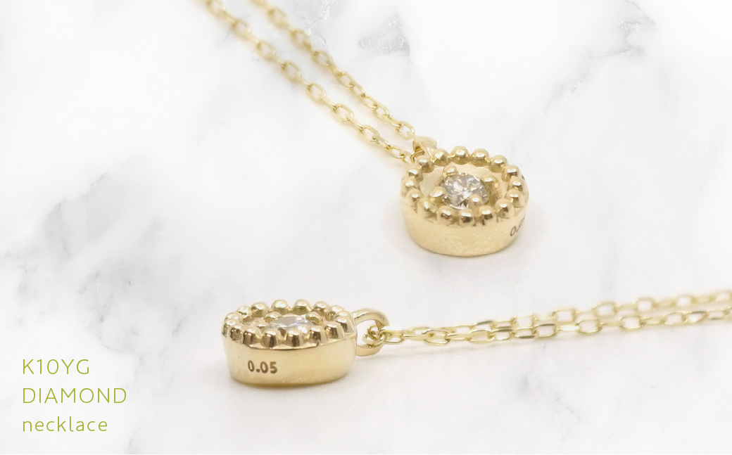 粒金のフレームに1粒ダイヤモンドをセッティングしたベーシックデザインのネックレスです。