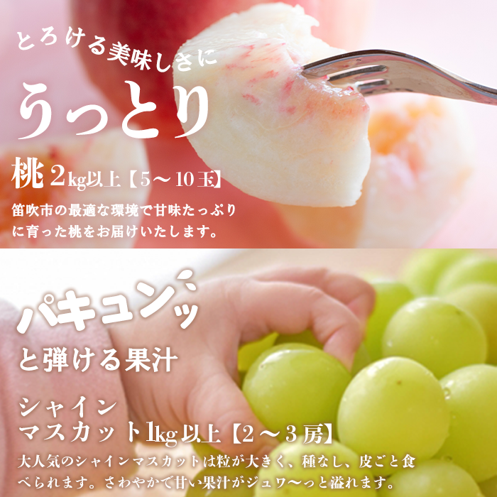 大人気商品のシャインマスカット、桃を詰め合わせセットでお届けします!