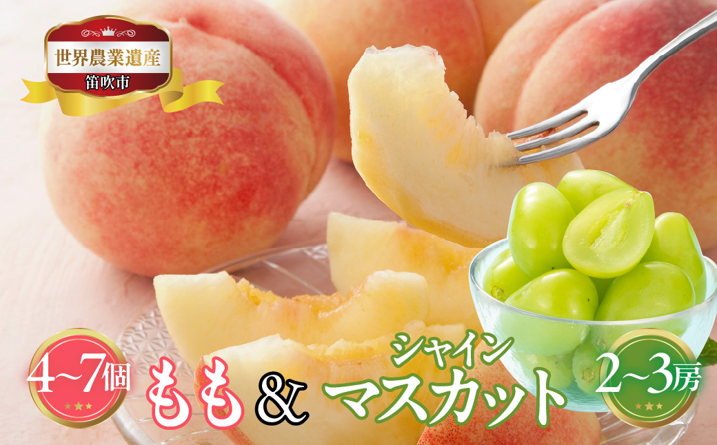 【2026年発送★先行予約】山梨県笛吹市産 桃(白桃)・シャインマスカット詰合せ 3kg(白桃4個~7個・シャインマスカット2房~3房) 223-018-26y | ふるさと納税 人気 おすすめ ランキング もも 桃 シャインマスカット 国産 人気 期間限定 果物 フルーツ ギフト 贈り物 プレゼント 旬 山梨県 笛吹市 送料無料