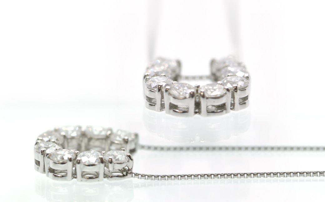 プラチナの馬蹄モチーフに、無色透明天然ダイヤモンドを0.5カラットセッティングした、存在感のあるネックレスです。