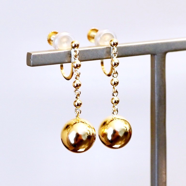 K18(18金) イエローゴールド ボール チェーン イヤリング 地金 中空(直径8mm) 保証書付 M1059ER 242-045