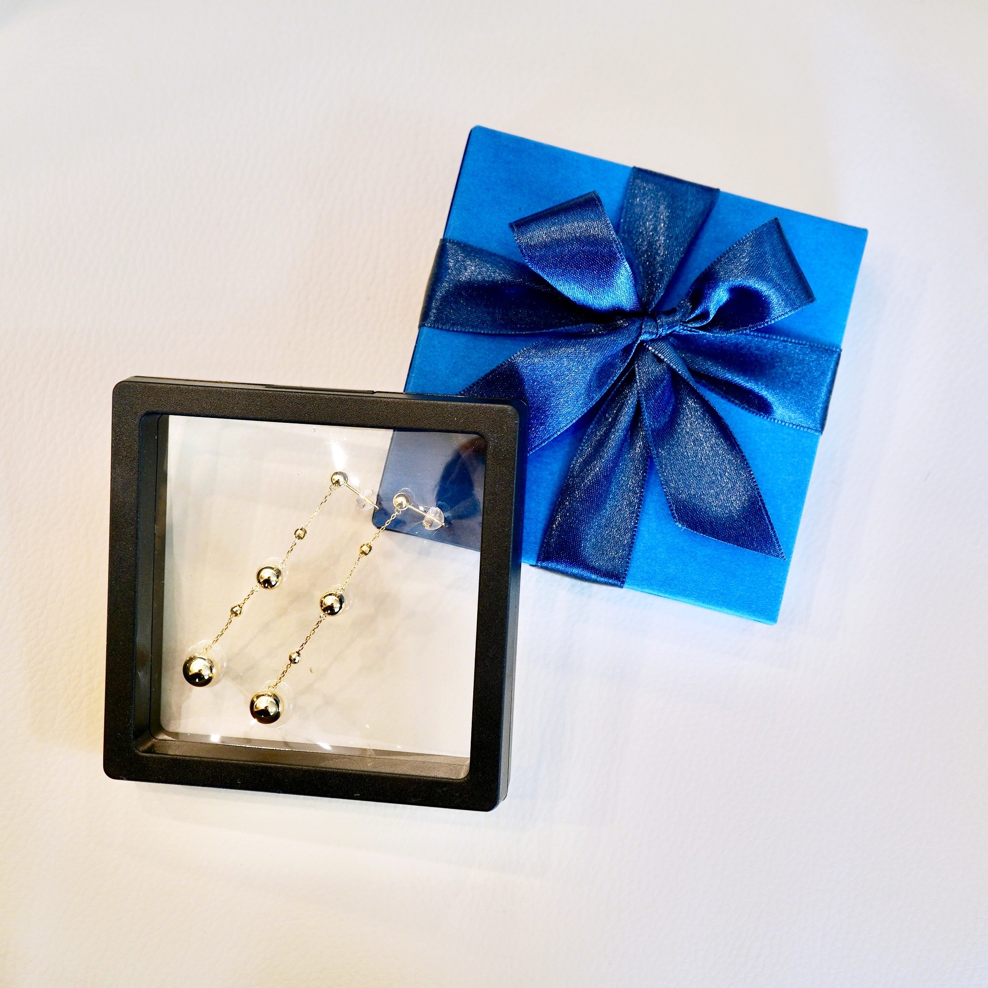 | 容量 | ピアス 1ペア(2個) 素材:K18(18金)イエローゴールド 全長:約64mm パーツのサイズ:丸珠.4.6.8mm各2pc ミラーボール3mm 4pc ポスト:0.65x9mm シリコンキャッチ ジュエリーケース(リボン付) 保証書付(カード型) |