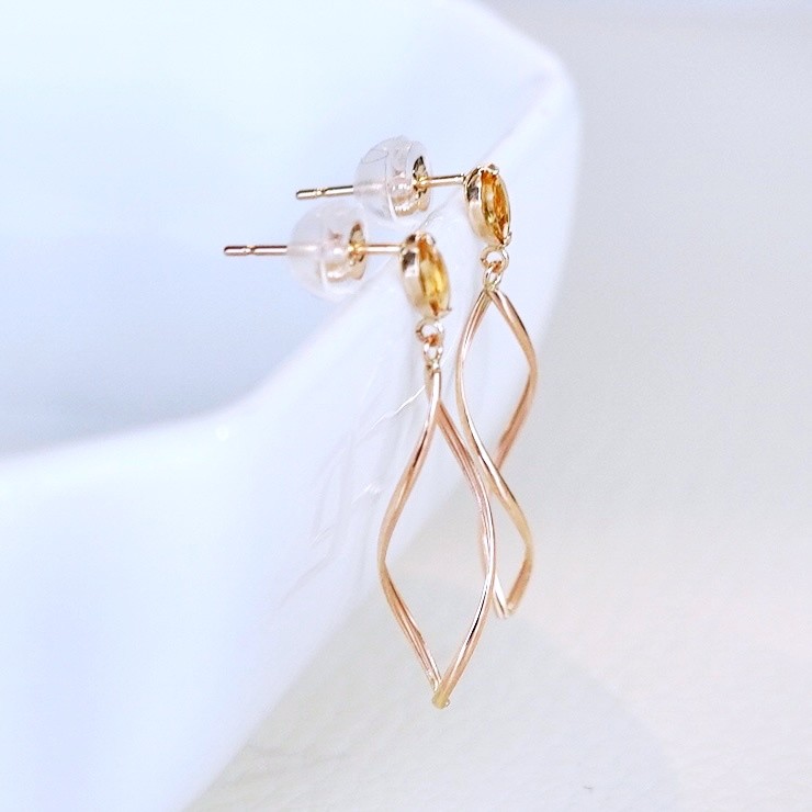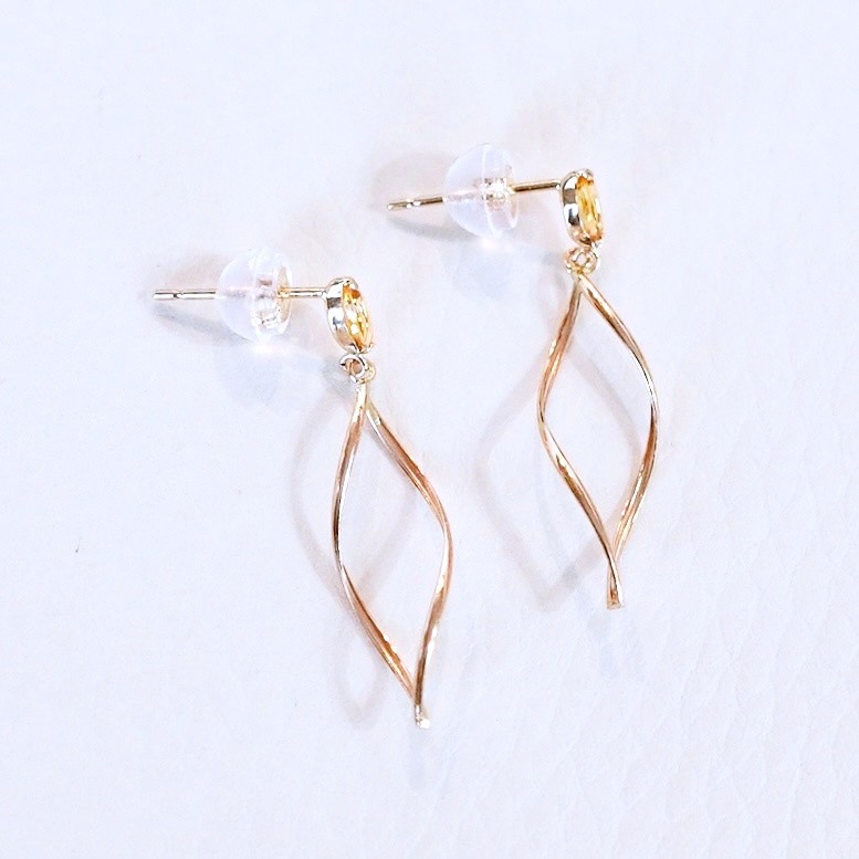 K10YG(10金) イエローゴールド 揺れる シトリン 地金 ピアス 保証書付 SR-2363 242-055-b