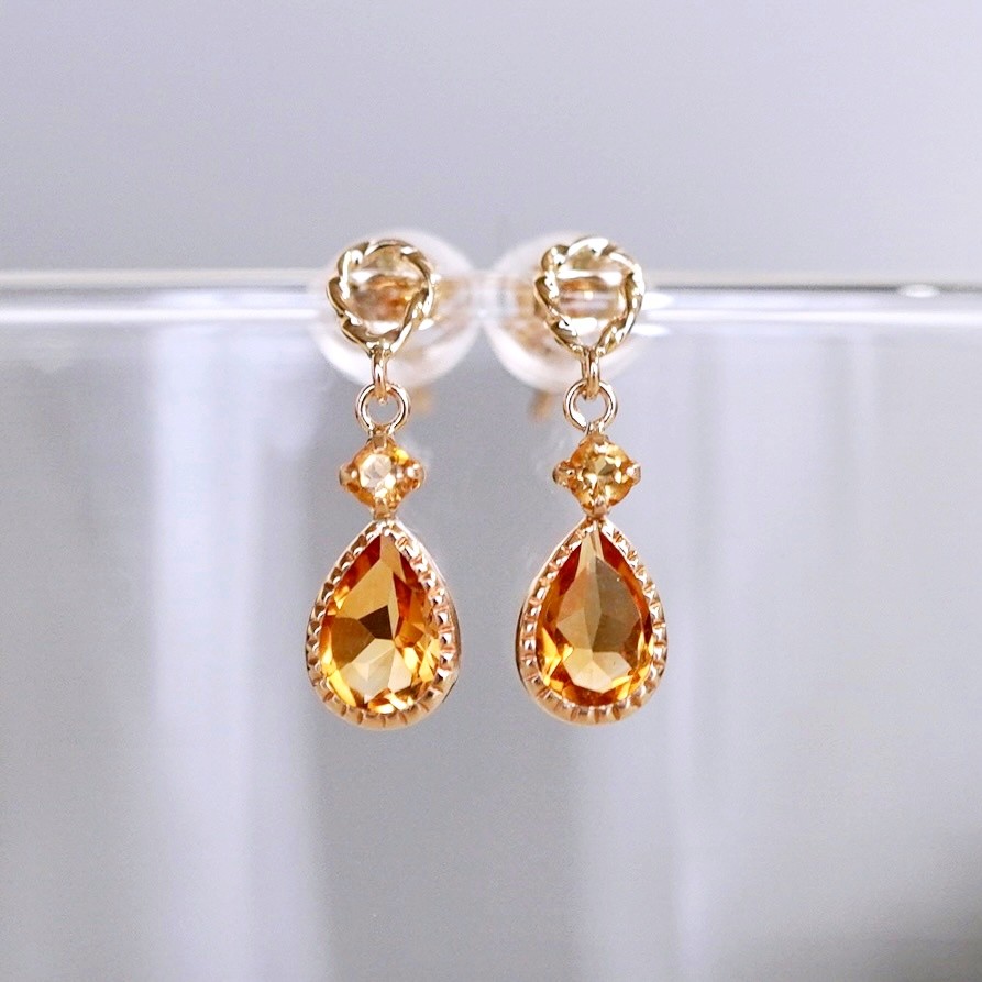 シトリンが揺れて煌めくピアスです。