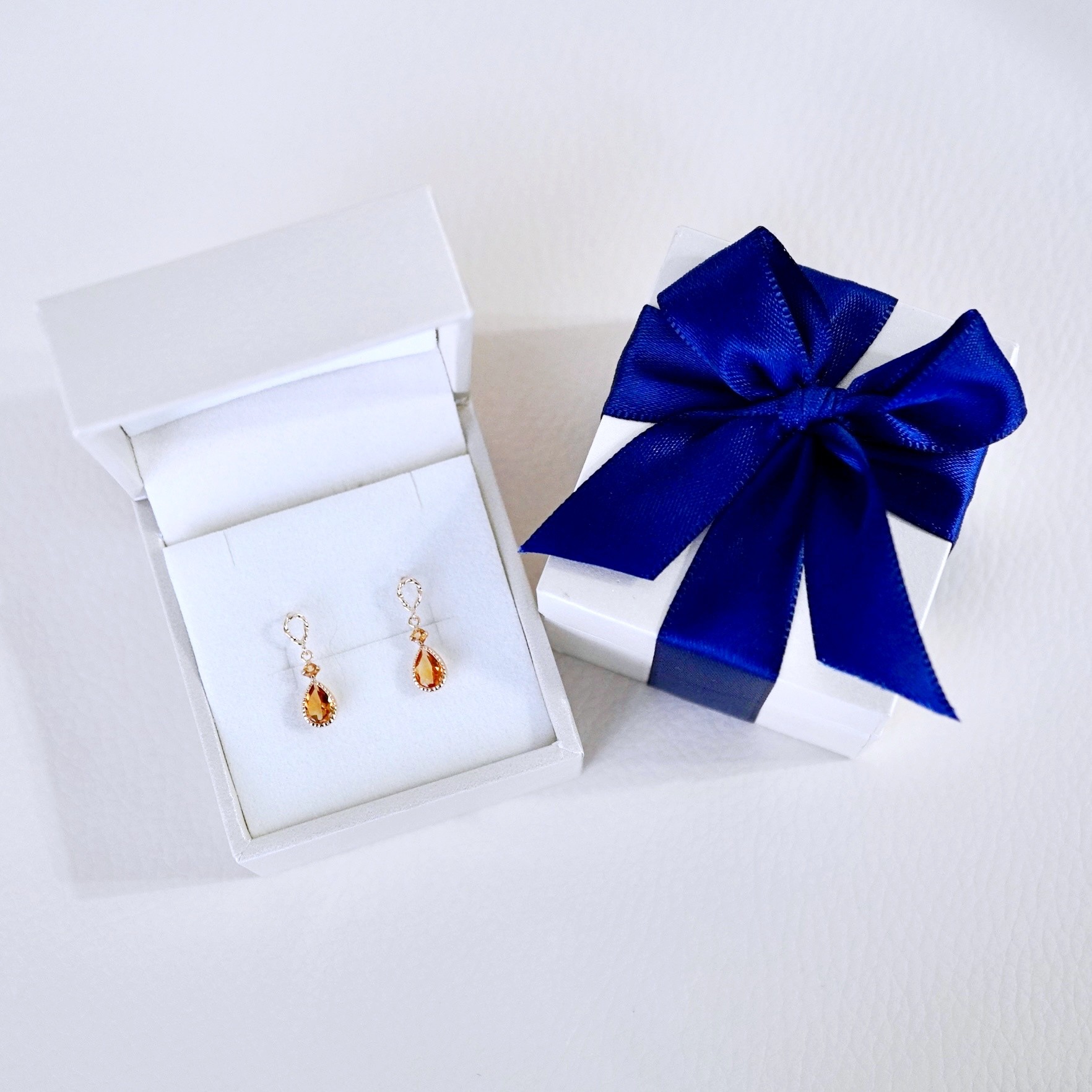 | 容量 | ピアス 1ペア(2個) 素材:K10(10金)イエローゴールド、シトリン 全長:16mm 石のサイズ:6.0x4.0mm ペアシェイプ 2pc、2mm ラウンド 2pc ポスト:0.65x10mm シリコンキャッチ ジュエリーケース(リボン付) 保証書付(カード型) |