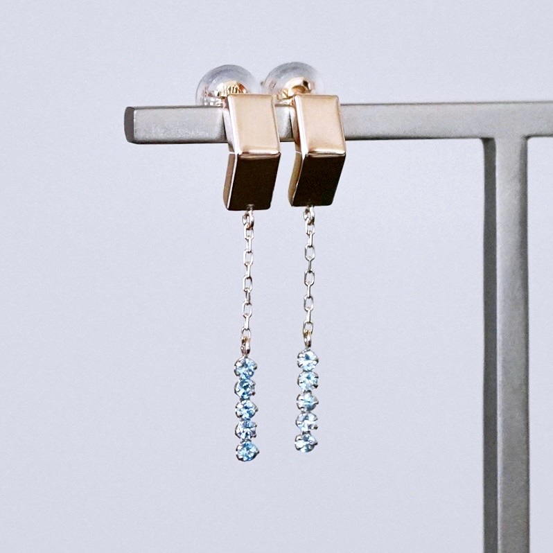 エッジの効いた地金ピアスにチェーンで天然石のパーツを付けました。