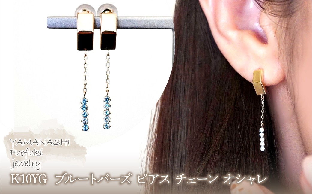 K10YG(10金) イエローゴールド ブルートパーズ ピアス チェーン オシャレ 保証書付 YF-19 242-065-a