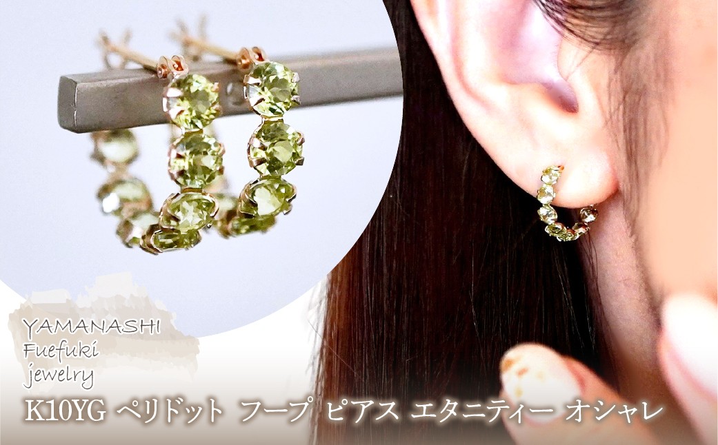 K10YG(10金) イエローゴールド ペリドット フープ ピアス エタニティー オシャレ 保証書付 YF-20 242-067-d