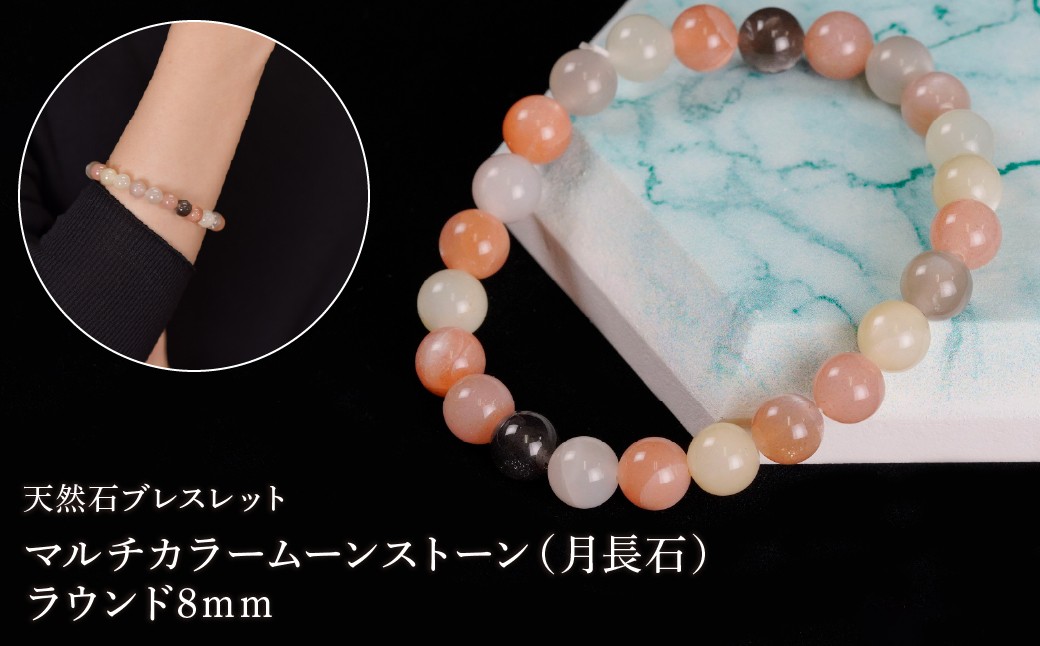 マルチカラームーンストーン(月長石)数珠ブレスレット マルチカラームーンストーン(月長石) ラウンド8mm 数珠ブレスレット 1本 Brc-8 244-008