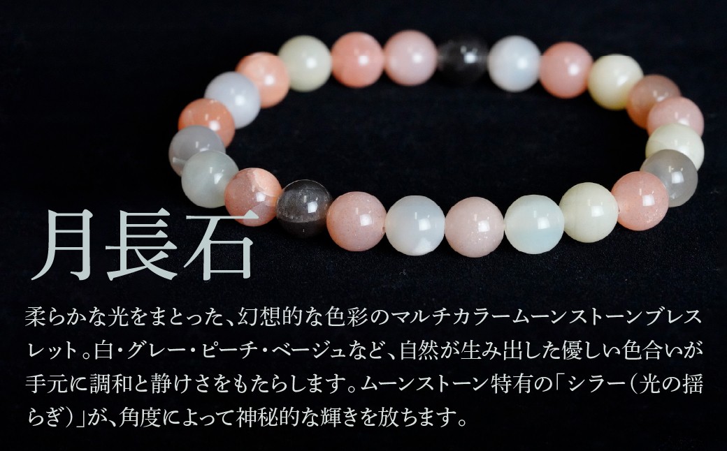 柔らかな光をまとった、幻想的な色彩のマルチカラームーンストーンブレスレット。