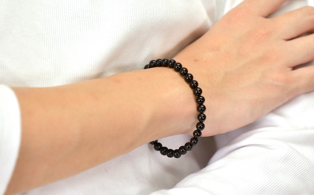 深く漆黒に輝く天然ブラックトルマリンのブレスレット。
