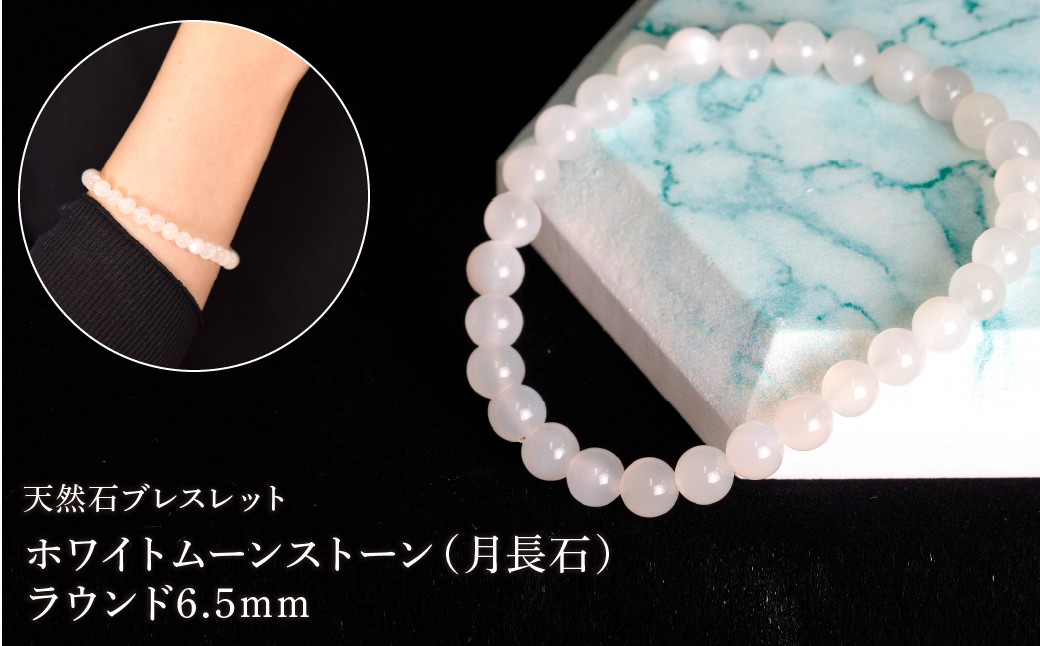 ホワイトムーンストーン(月長石) 数珠ブレスレット ホワイトムーンストーン(月長石) ラウンド6.5mm 数珠ブレスレット 1本 Brc-17 244-017