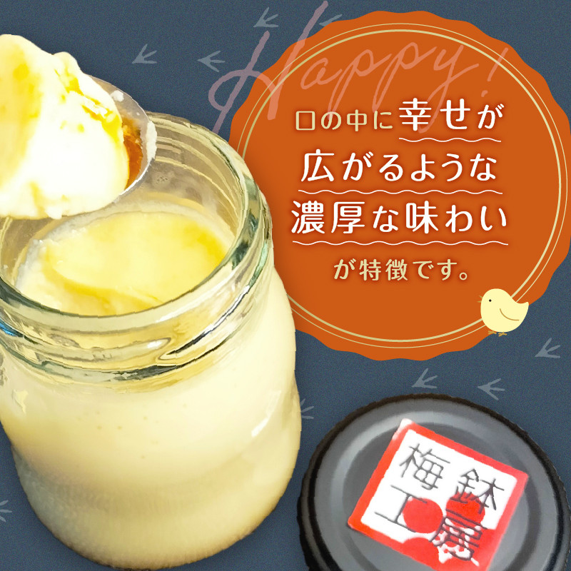 そんなアローカナのたまごを使用した梅鉢工房のプリンは、口の中に幸せが広がるような濃厚な味わいです。さらに、添加物不使用で、キャラメルソースも体に優しいと言われる「ビートグラニュー糖」から作られているので、安心してお召し上がりいただけます。