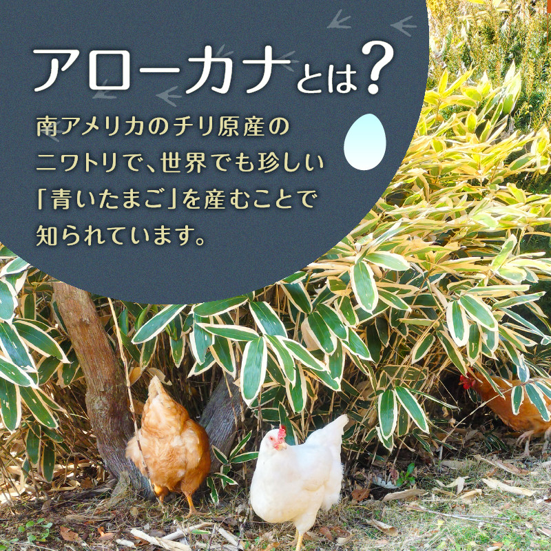 アローカナは、南アメリカのチリ原産のニワトリで、世界でも珍しい「青いたまご」を産むことで知られています。梅鉢工房は、より自然に近くストレスに配慮した環境で、アローカナを飼育しています。ボスの雄鶏「ハナ吉」が見守り、大きく羽ばたけるほどの広さ、ちょうど良い大きさの止まり木が生えているなど、のびのびとした環境で育てられたアローカナは、非常に新鮮で美味しい「有精卵」を産んでくれます。