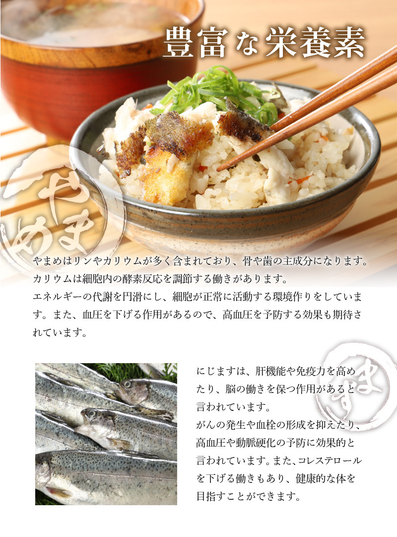 | 容量 | 【内容】 ・鮎1箱(約600g)6~7尾 ・やまめ(約600g)6~7尾 ※内臓処理はしておりません。 【賞味期限】 ・製造から180日 【保存方法】 ・冷凍 |
