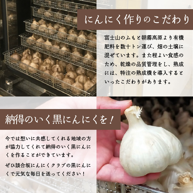 富士山のふもと朝霧高原より有機肥料を数十トン運び地元の畑に混ぜ、他には無い富士山の力を加えにんにく力をアップさせております。