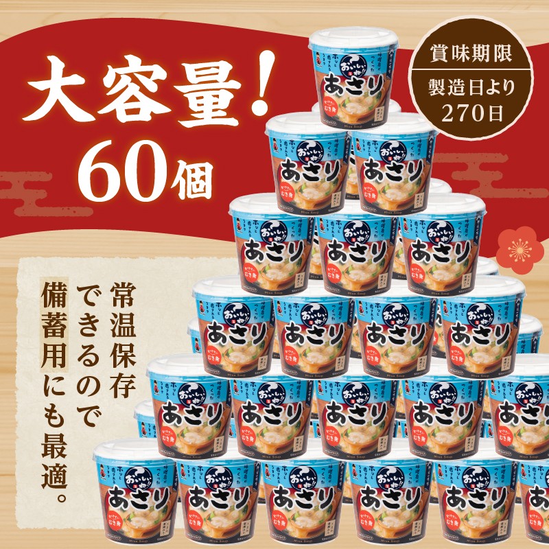 味噌汁 神州一味噌 むき身あさり インスタント 即席 みそ汁 備蓄 防災 大容量 常温保存 保存食 ローリングストック 非常食 簡単 レトルト 便利 発酵食品 カップ味噌汁 60食 送料無料 山梨県 上野原市