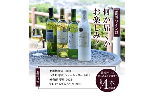 勝沼ぶどうの丘推奨の白ワイン4本セットでお届けいたします。