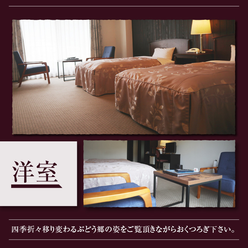 ~四季折々移り変わるぶどう郷の姿をご覧頂きながらおくつろぎ下さい~ 勝沼ぶどうの丘ペア宿泊券(夕食付きプラン)(KBO)G3-1301