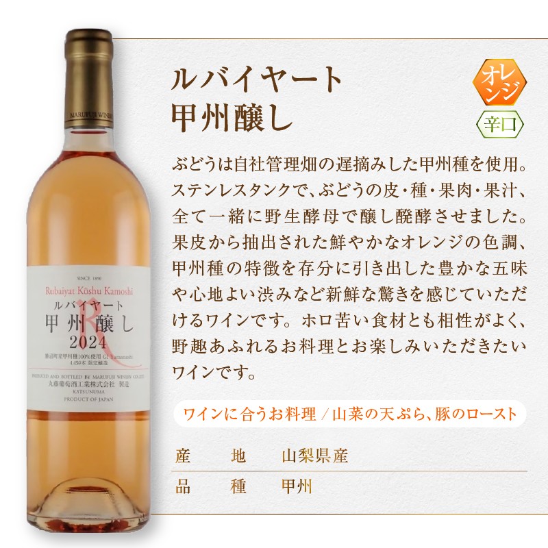 山梨県を代表する甲州種で醸造された4本の甲州ワイン飲みくらべ4本セットをお届け ルバイヤート甲州ワイン飲みくらべ4本セット(MG)D-680 【ワイン 丸藤葡萄酒 白ワイン オレンジワイン 甲州市 山梨県】
