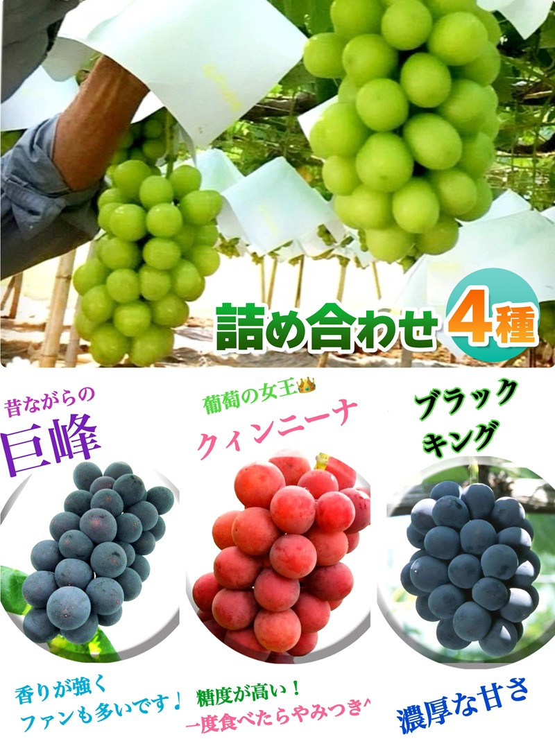 シャインマスカット・クインニーナ・巨峰・ブラックキング【豪華4種セット】