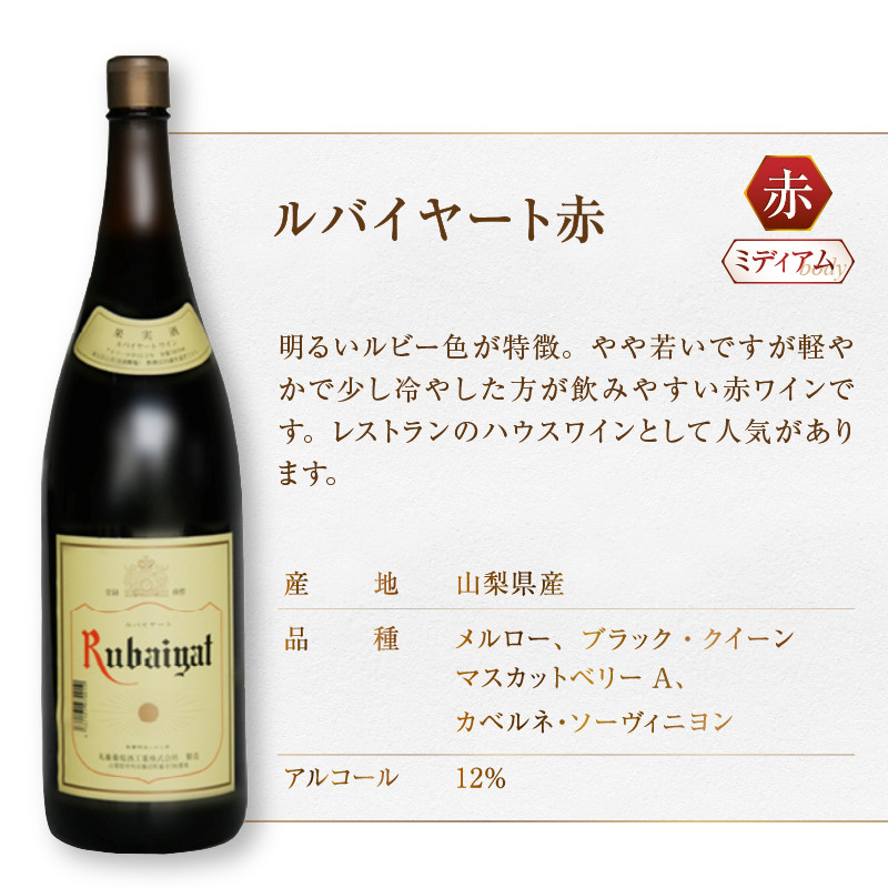 | 容量 | ルバイヤート白(1800ml)×1 ルバイヤート赤(1800ml)×1 申込期日:通年 |