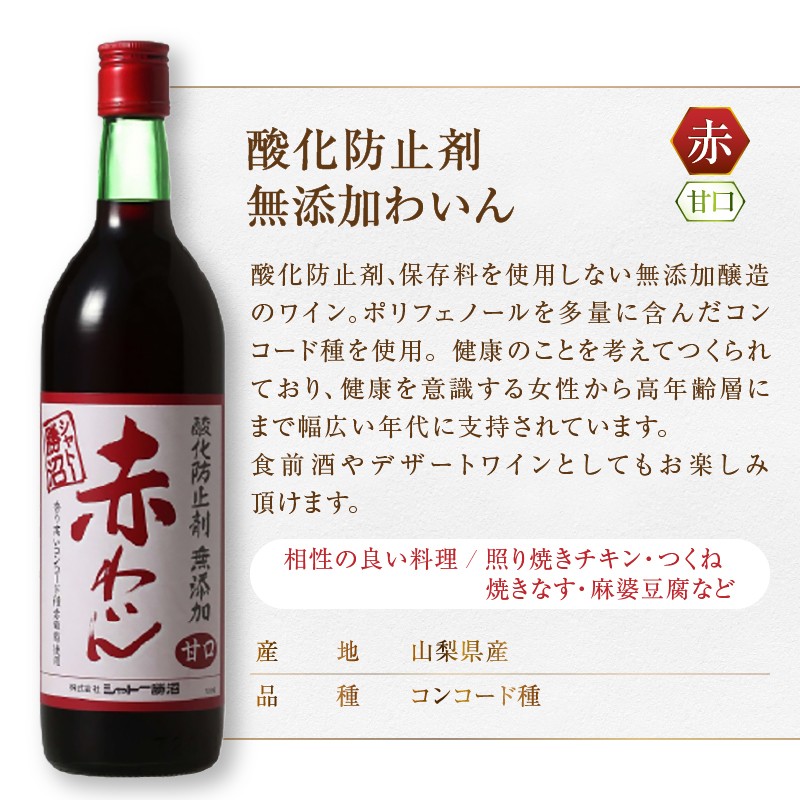 ~シャトー勝沼で一番人気酸化防止剤無添加赤わいんを6本お届け~ シャトー勝沼 酸化防止剤無添加赤わいん甘口6本セット(MG)C5-663 【ワイン シャトー勝沼 赤ワイン 甲州市 山梨県】