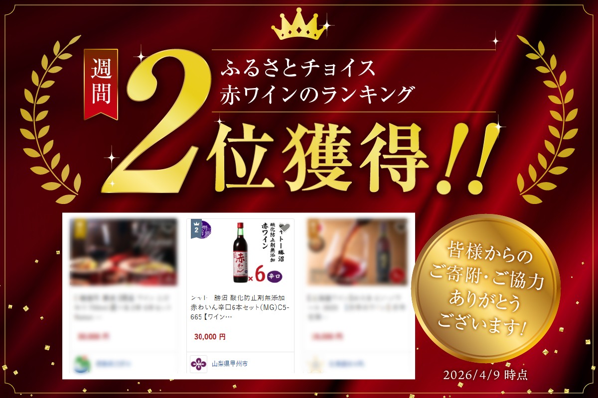 ■関連キーワード:ワイン セット 赤ワイン 6本 720ml 辛口 赤わいん 酸化防止剤 無添加 シャトー勝沼 母の日 父の日 記念日 ギフト 山梨県 甲州市
