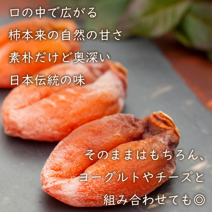 通常の枯露柿よりも少し柔らかく食べやすいため、干し柿は固くて苦手!という方にもぜひお召し上がりいただきたい逸品です。冬の贈り物やお歳暮に、ぜひこの特別な味わいをお試しください。