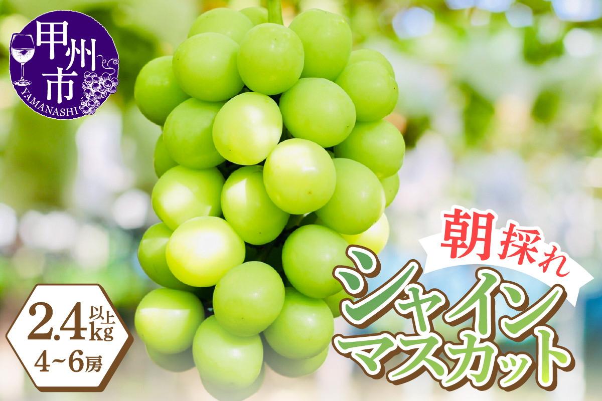~日本有数のフルーツの街から旬の味、香り、彩りで皆様に喜びを!~ 感謝を込めて最高の朝採りシャインマスカットをお贈りします!2.4kg以上(4~6房)【2026年発送】(LMS)C-416【シャインマスカット 葡萄 ぶどう ブドウ 令和8年発送 期間限定 山梨県産 甲州市 フルーツ 果物】
