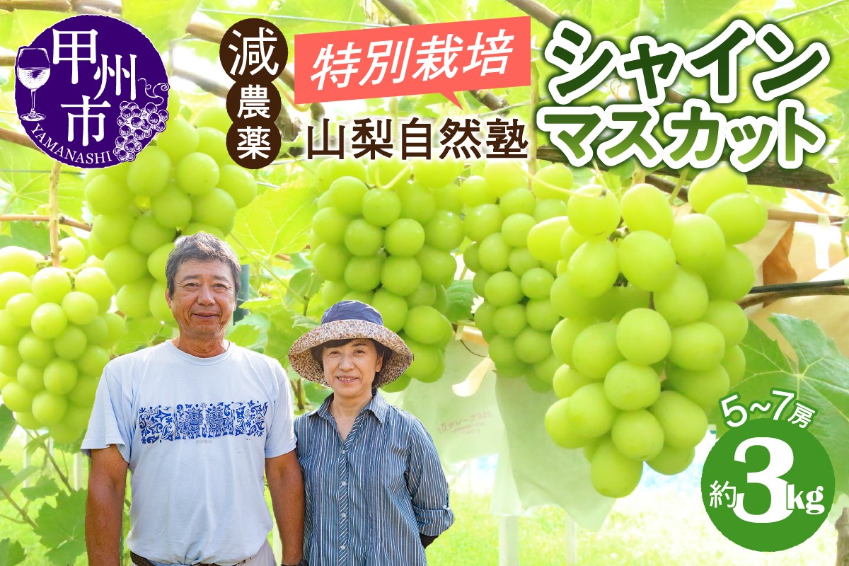 ~自然に逆らうのではなく、自然と共生しながらぶどう作りをしています。~ 減農薬「特別栽培」やまなし自然塾の甲州市産シャインマスカット 約3kg(5~7房)【2026年発送】(YSGK)C5-160 【シャインマスカット 葡萄 ぶどう ブドウ 令和8年発送 期間限定 山梨県産 甲州市 フルーツ 果物】