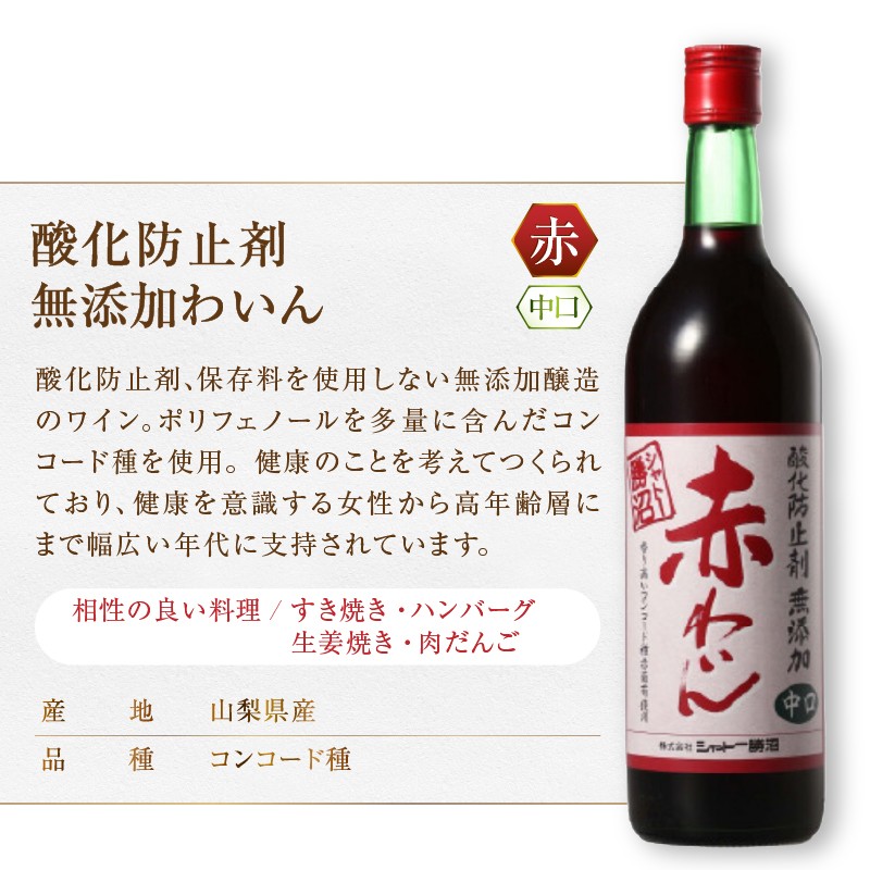~シャトー勝沼で人気酸化防止剤無添加赤わいんを12本お届け~ シャトー勝沼 酸化防止剤無添加赤わいん中口12本セット(MG)H-481 【ワイン シャトー勝沼 赤ワイン 甲州市 山梨県】