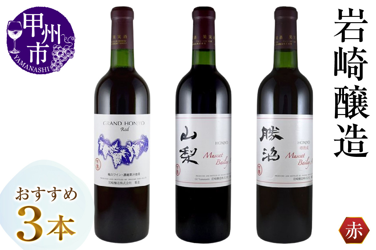~エムズギフトと岩崎醸造が自信を持ってお勧めする赤ワイン3本~ 岩崎醸造おすすめ赤ワイン3本セット(MG)B19-487 【ワイン 岩崎醸造 赤ワイン 甲州市 山梨県】
