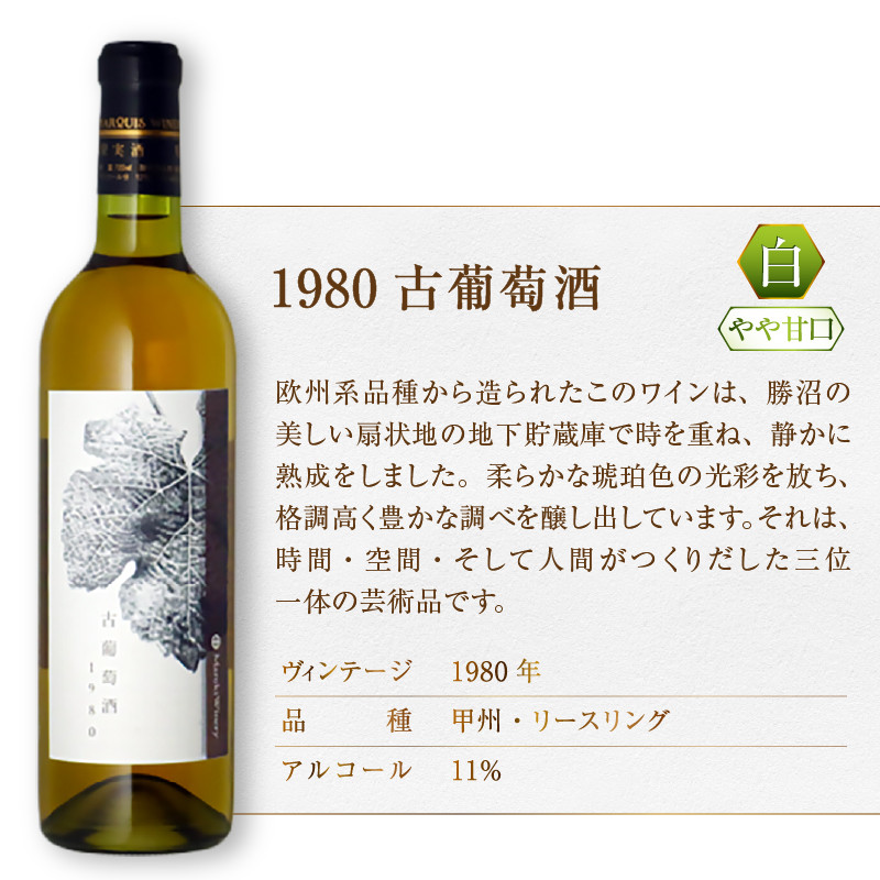 ~長い年月をかけて熟成した芸術の逸品 大切な方への誕生日や記念日の贈り物にも~ 『希少!40年超熟成ワイン』1980古葡萄酒【白】まるき葡萄酒(MG)G1-660 【ワイン まるき葡萄酒 白ワイン 甲州市 山梨県 】