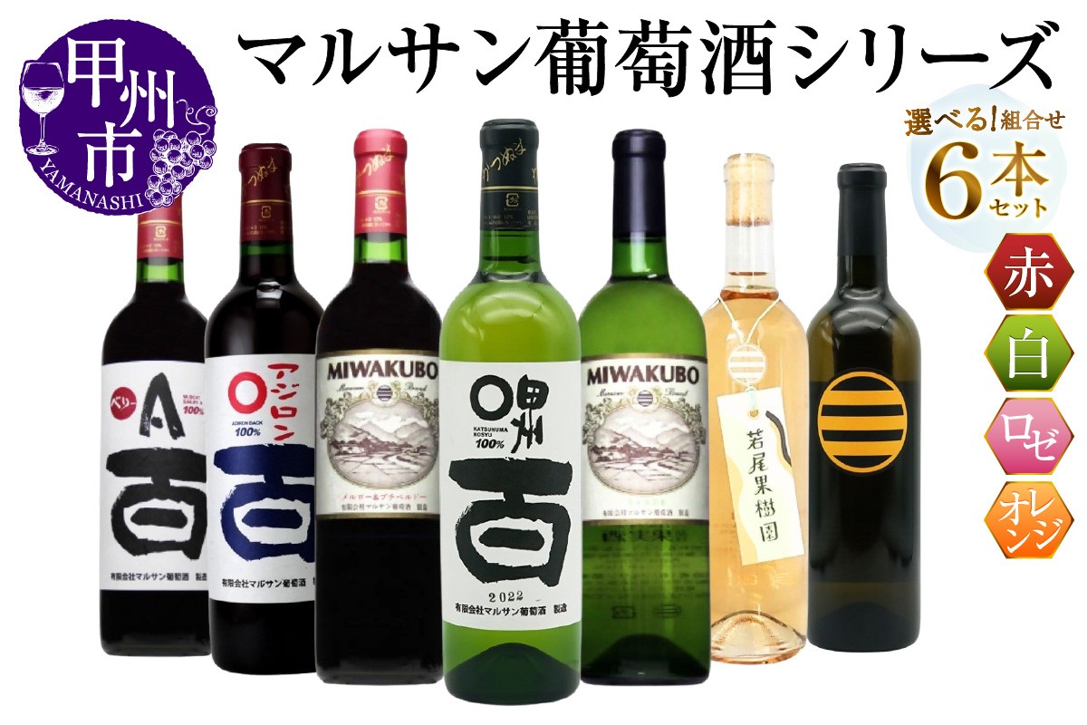 ~マルサン葡萄酒からワインをお届けします。~ 【選べる組合せ】マルサン葡萄酒 6本セット【ベリーA 百 / アジロン 百 / 甲州 百 / MIWAKUBO メルロー&プチベルドー / MIWAKUBO シャルドネ / 若尾果樹園 / 醸し甲州】(MG)【ワイン 赤ワイン 白ワイン ロゼワイン オレンジワイン 甲州市 山梨県】