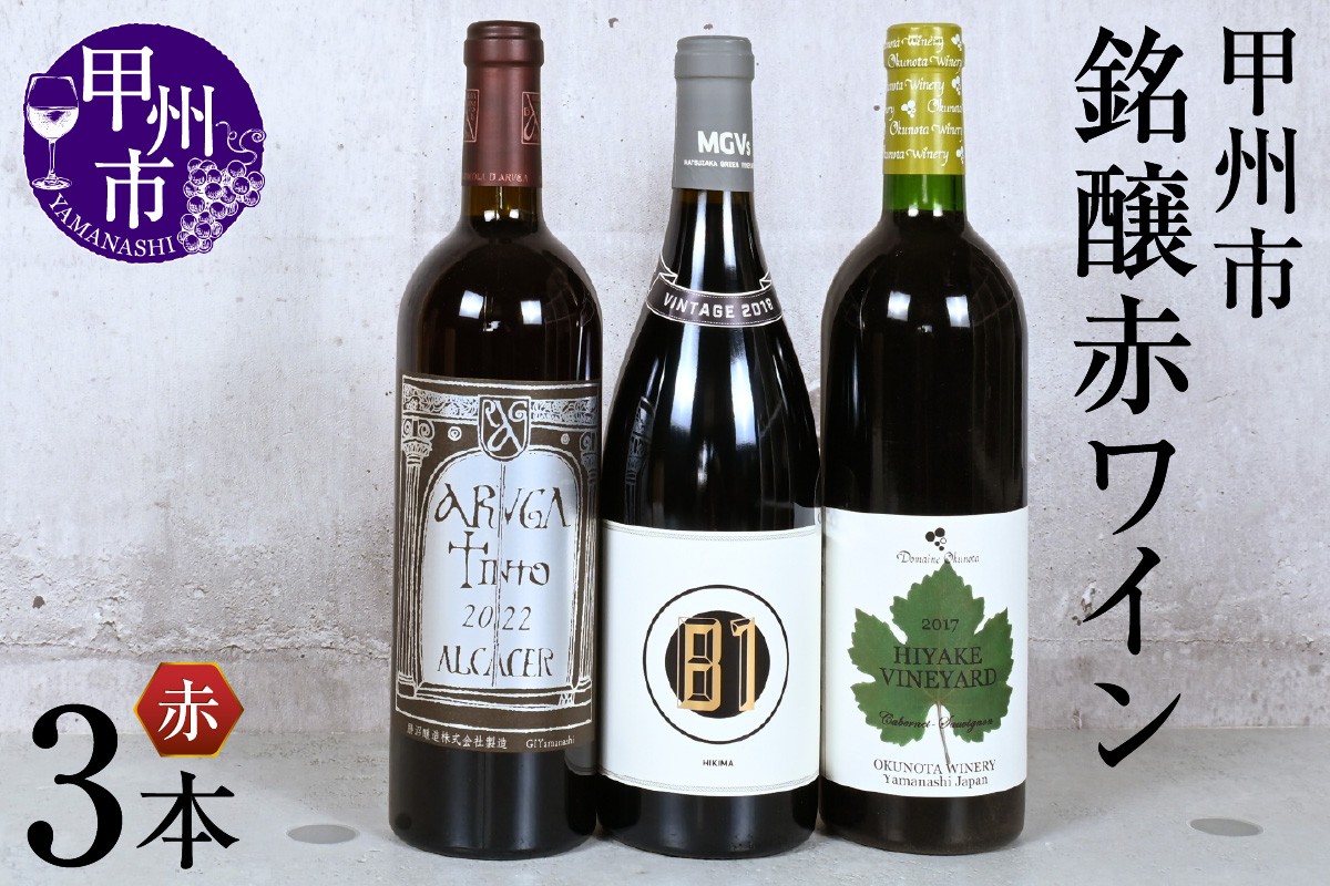 ~日本ワインで有名な勝沼の3ワイナリーからフラッグシップワインをお届け~ 甲州市銘醸ワイン赤3本セット(KSB)J2-610【ワイン 赤ワイン 勝沼醸造 MGVsワイナリー 奥野田葡萄酒 甲州市 山梨県】