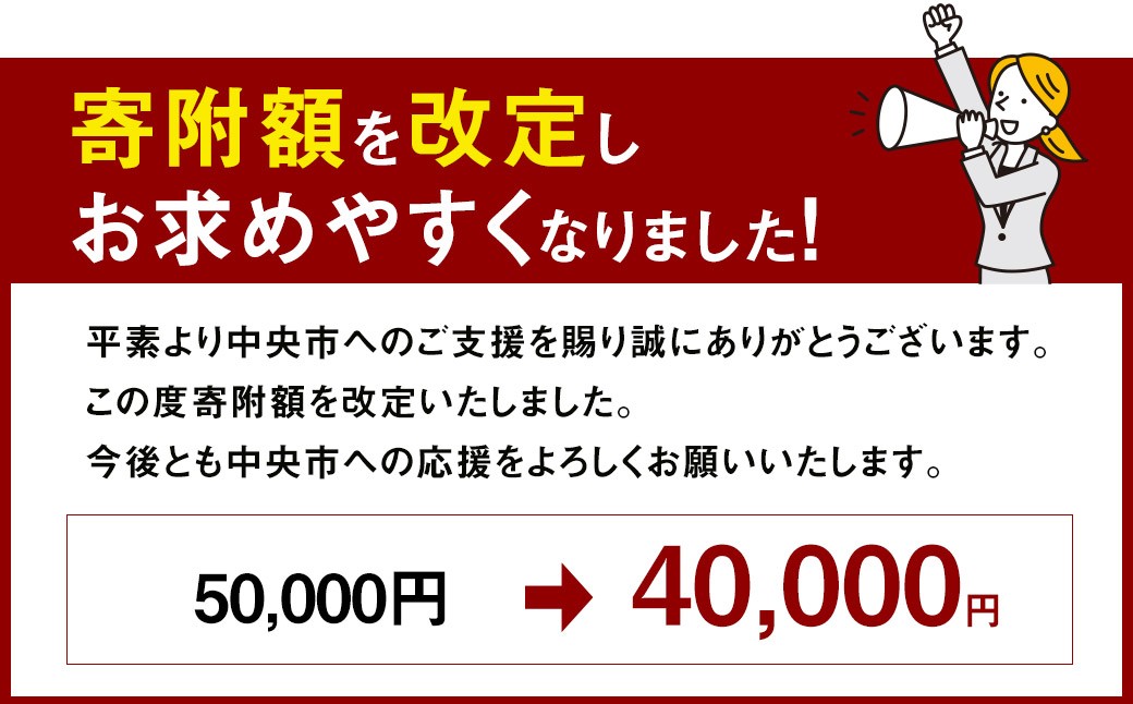 寄附確認後、30営業日以内に発送予定。 年末年始(12月、1月)は60営業日以内に発送予定。 ※発送状況により多少前後する場合がございますので、予めご了承ください。 |