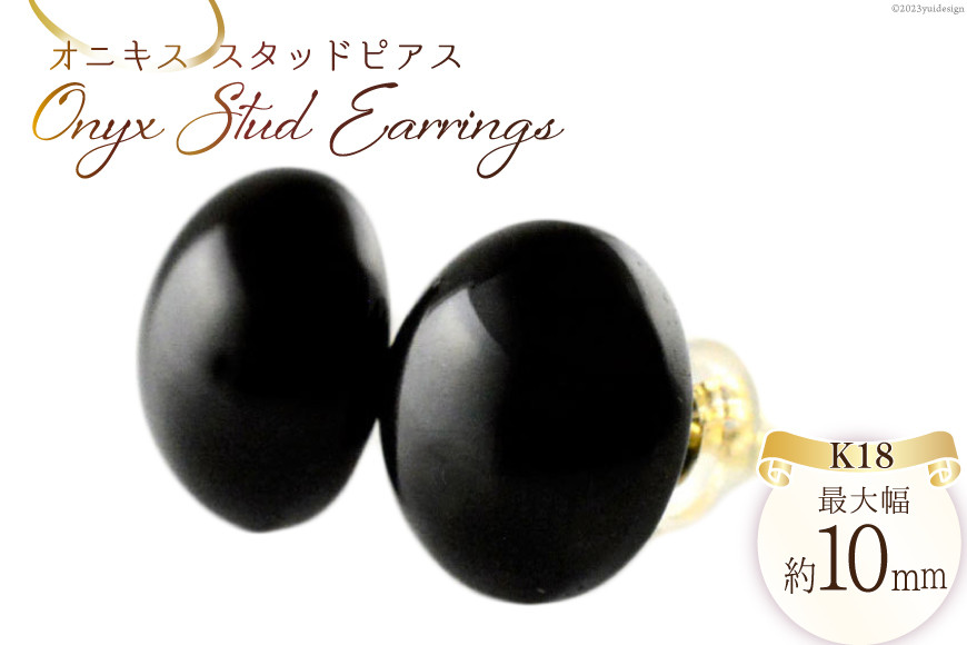 パワーストーン 魔除けの石「オニキス」 ピアス K18 オニキス スタッドピアス ジュエリーケース付き no.25400 [シエロ 山梨県 中央市 21470813] アクセサリー ジュエリー アクセ 黒色 一粒 カボション シンプル かわいい 天然石