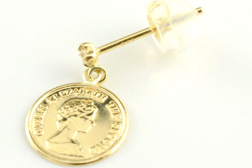 流行にとらわれないコインモチーフ 1粒のダイヤモンドがアクセント。