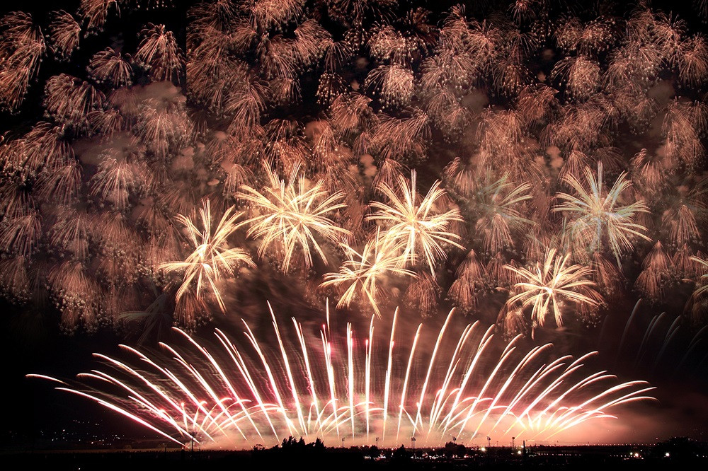 花火作りの伝統と技術を誇る町ならではの壮大な花火を楽しんでいただいています。