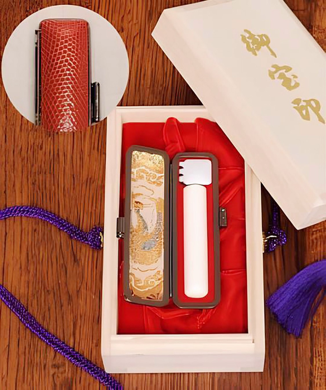 | 容量 | 素材:象牙 サイズ:12㎜丸×60㎜丈 トカゲ革ケース、桐箱付 |