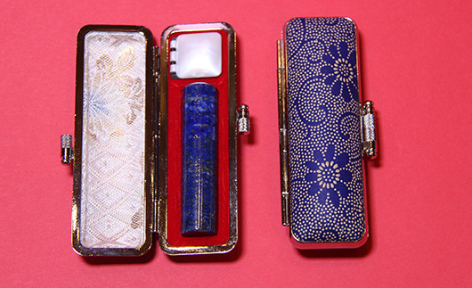 | 容量 | 印 材:ラピスラズリ サイズ:13.5㎜×60㎜ 印鑑ケース(印伝)色:黄、赤、黒、青からおひとつお選びください |
