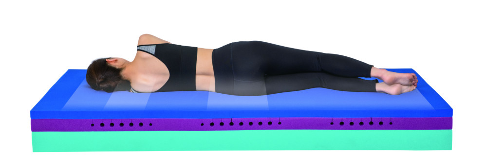 中層のウレタンには幅なりに貫通する穴を開け、下層のウレタンは高密度と高硬度でしっかり体を支えます。