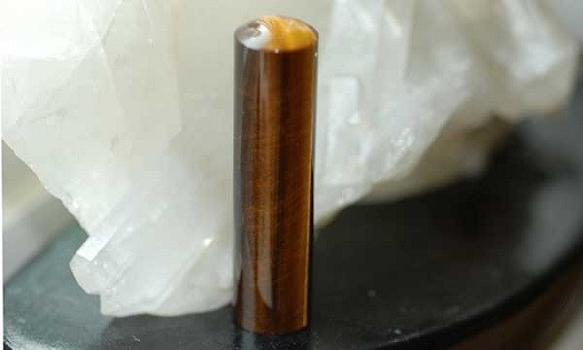 【天然石】虎目石印鑑(タイガーアイ) 18㎜丸60㎜丈 トカゲ革ケース 開運社本店[5839-1717]