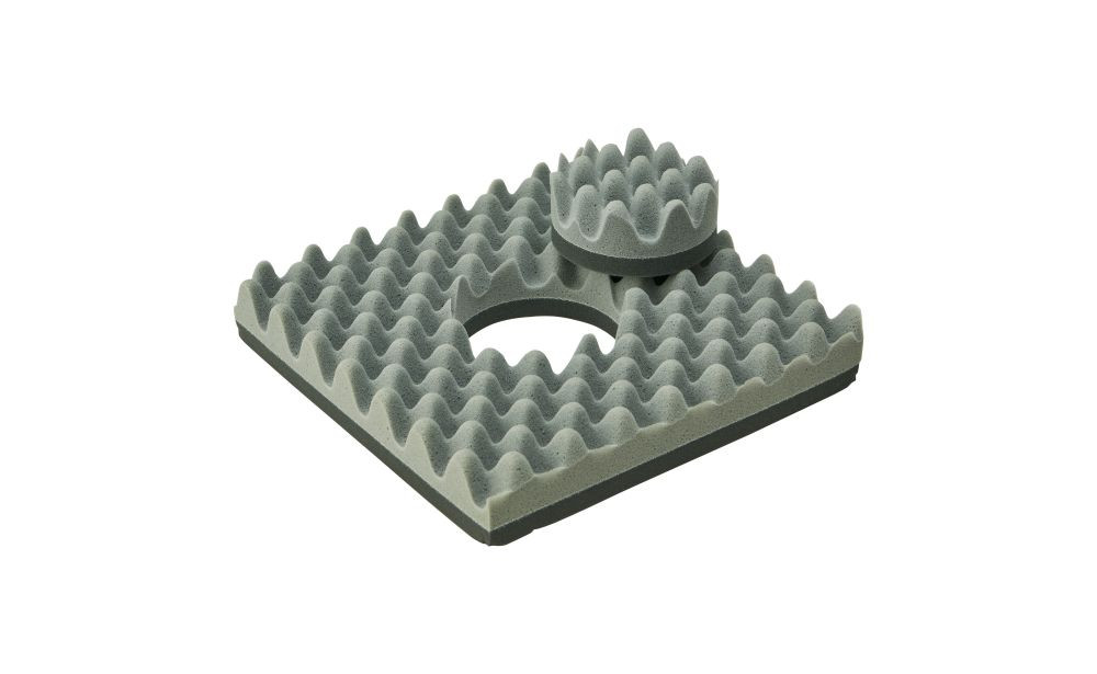 一つ一つのタマゴの点の山は、計算された理論に基づき設計されています。連続したタマゴ型フォルムが、受け止めた体重圧を水平・放射状にバランスよく分散させます。ムアツの点が移動することなく身体を支えるため、寝返りをうちやすくしています。