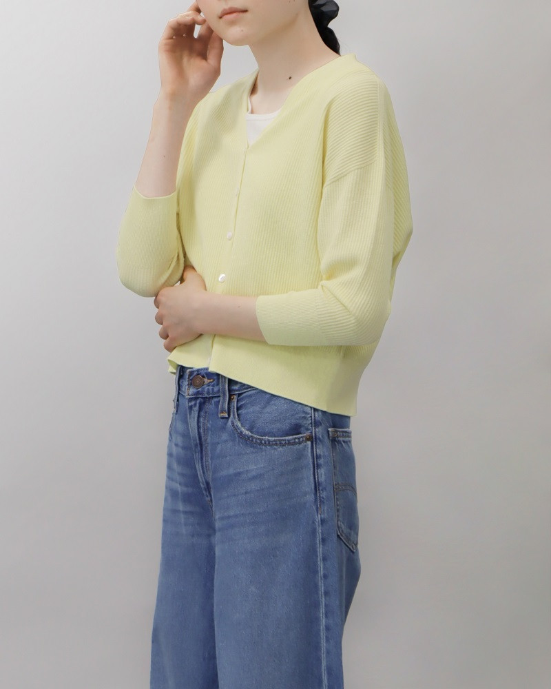 【天然素材/オーガニックコットン】普段使い ショート丈カーディガン 日本製 Mサイズ イエロー[5839-9876]